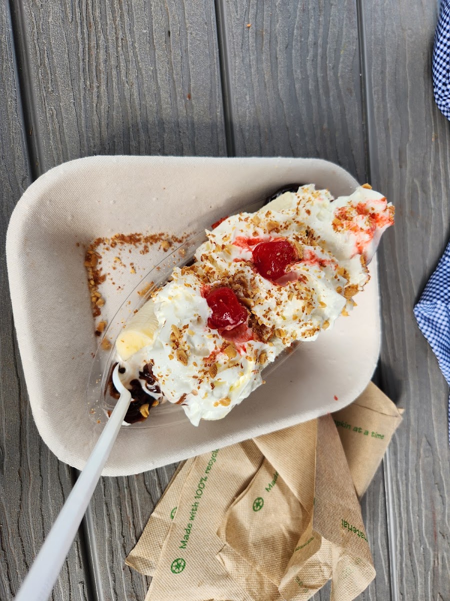 We got a chocolate and vanilla twist soft-serve at the drive thru, which is really handy. It was creamy and good, but I did think both the chocolate and the vanilla could have been bumped up in flavor. They were quite bland.